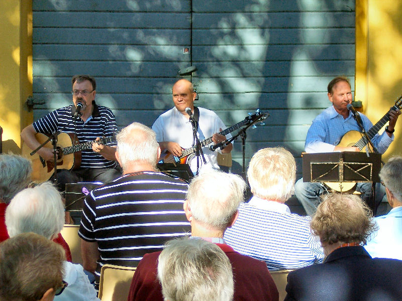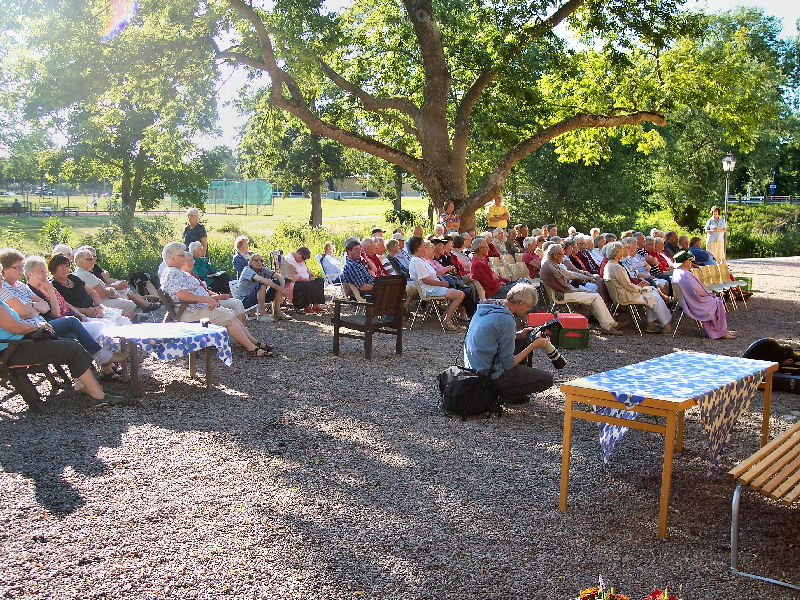 Två dagar in i juli kom vår väskustboende medlem Jonny Andersson som tillsammans med Bosse och Göran bildar Visgruppen SALT. Anders Ramberg och Gertrud Wennerberg bidrog också till att publiken trivdes.