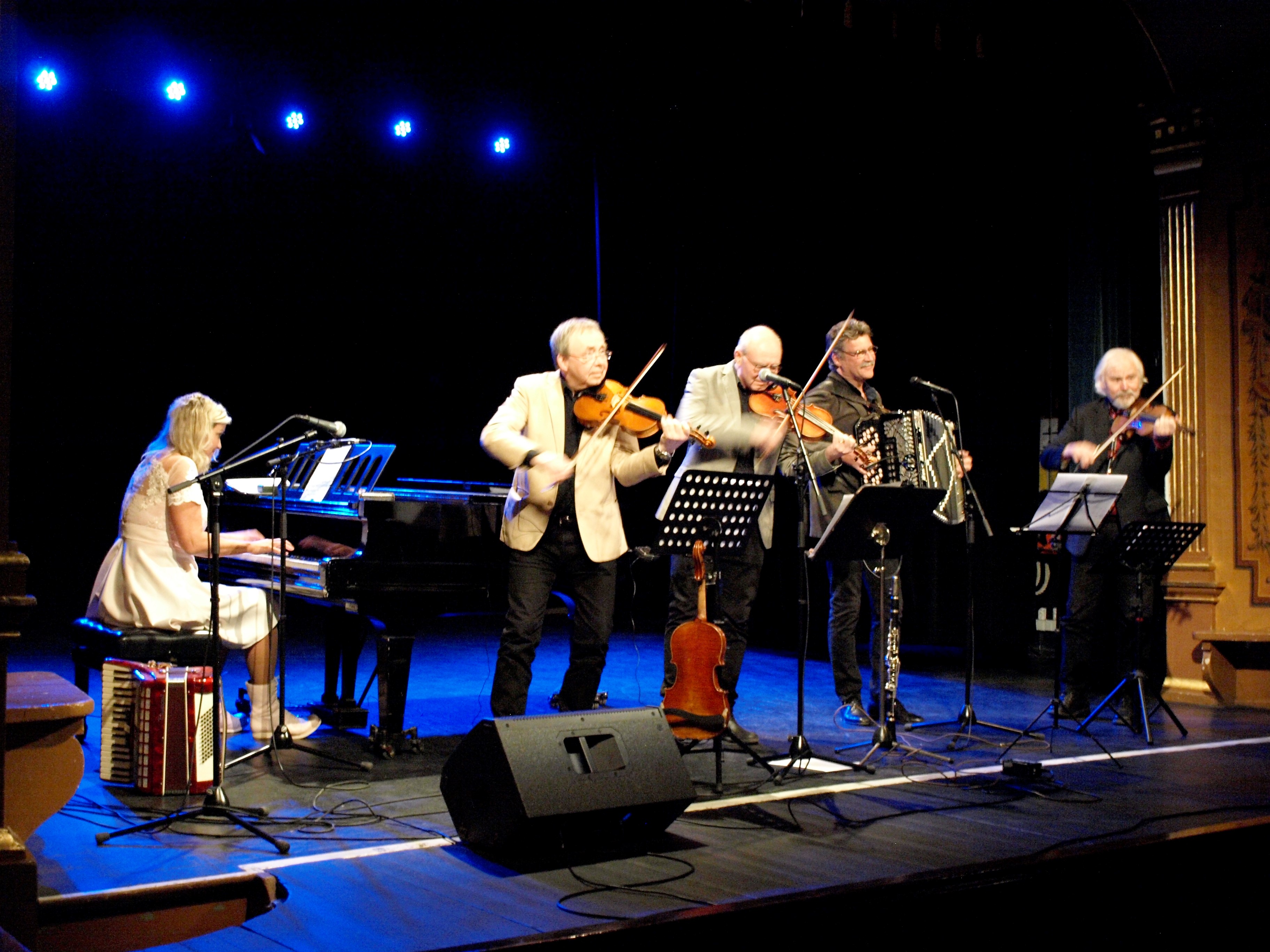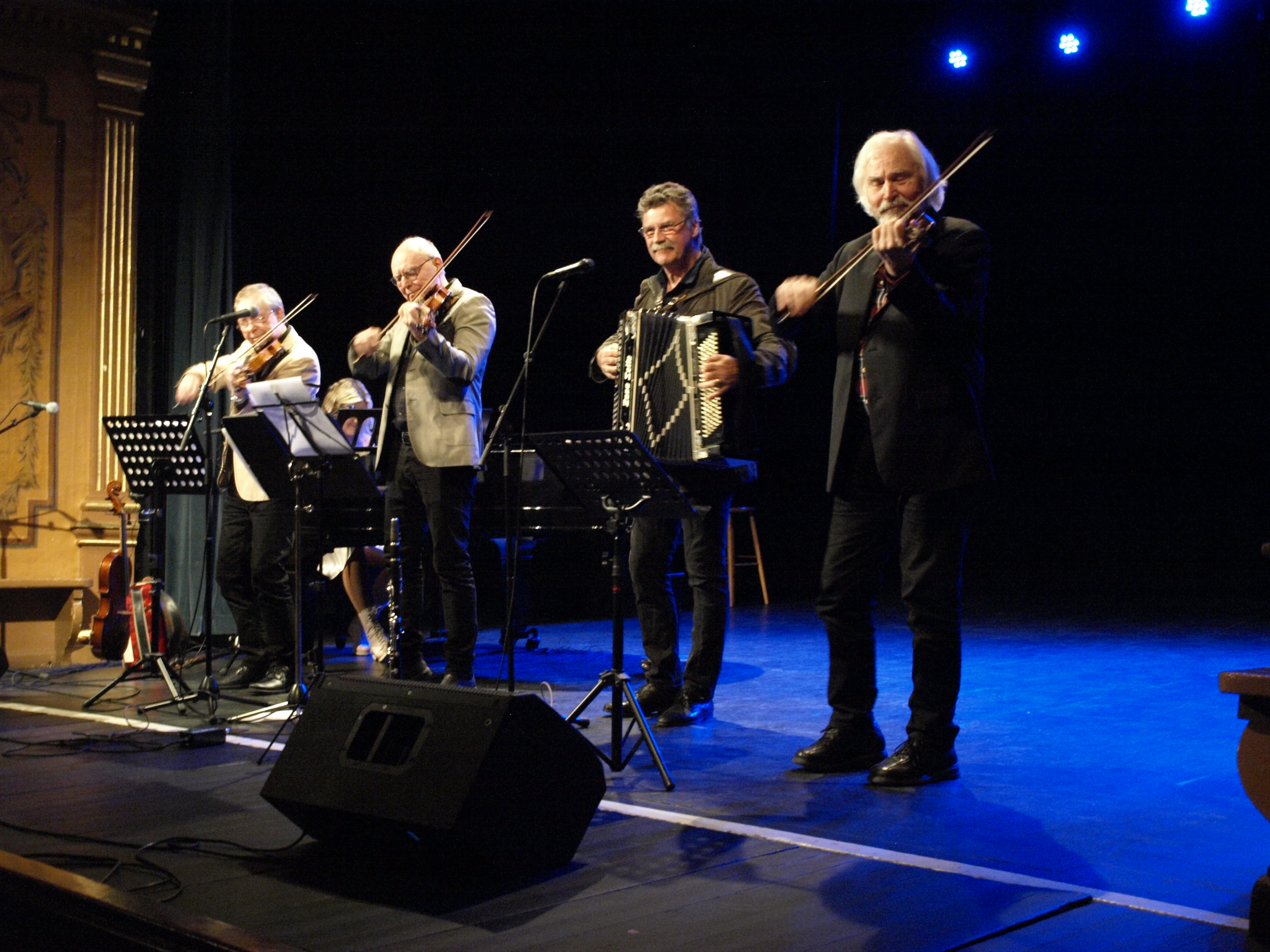 Taubeafton på Mariestads Teater med Tina Ahlin och Orsa Spelmän. Fullsatt i salongen. Fantastiska och generösa musiker. Entusiastisk publik.